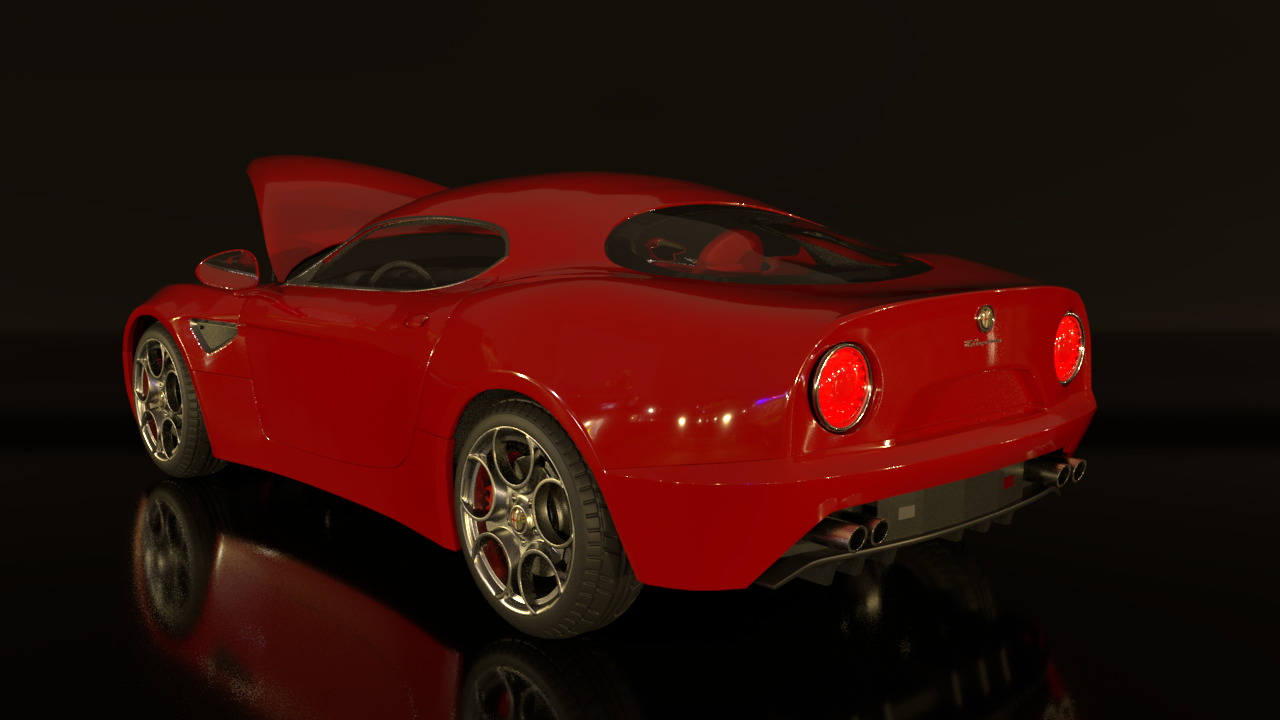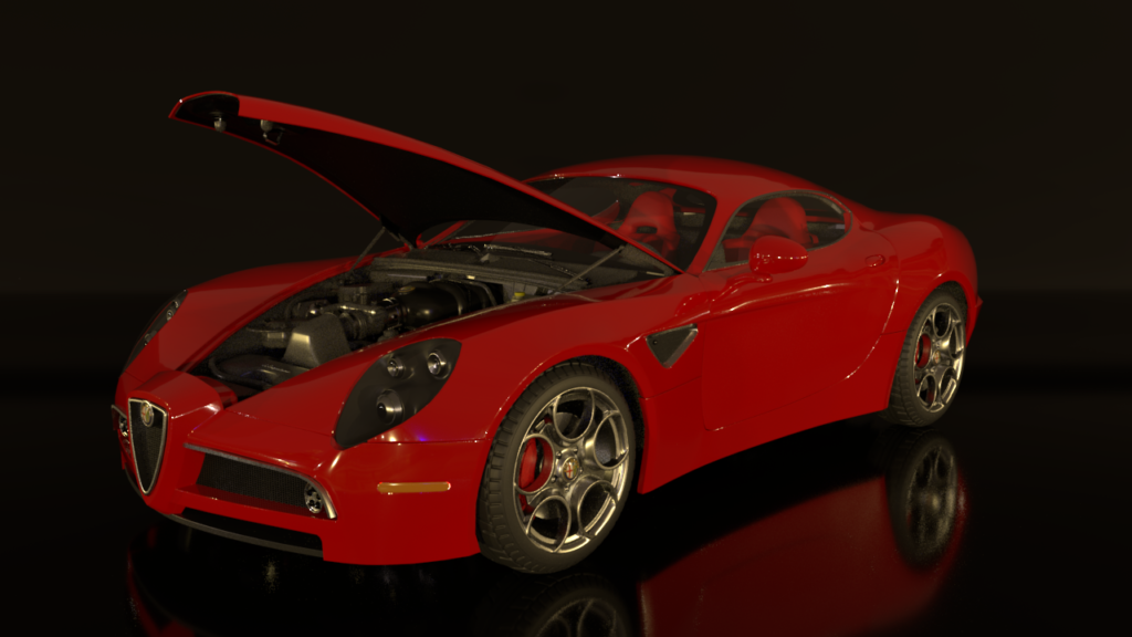 This is modeling of “Alfa Romeo 8c”. from refer to images, not only facade was modeled but also interior parts such as engines was done too. What’s the most interesting is that it has a feature of cool curved silhouette and shapes although it is a hard surface model.